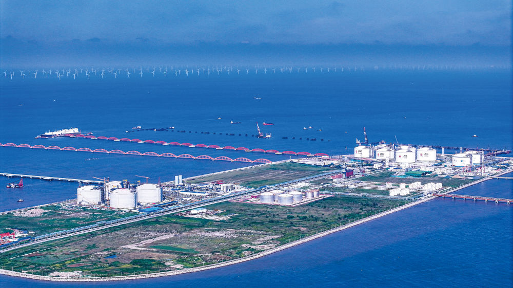 北翼的如东瀛口港,LNG接卸船往来靠泊,全年外输量冲破百亿立方米,是当前长三角地域最忙碌的天然气接卸储运枢纽,也为临港财产供给不变靠得住的物流运输保障,能源和化工产物进出口约占如东全县外贸总值七成。