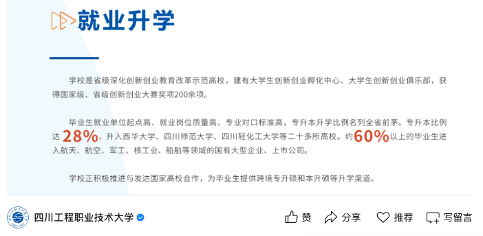 也正因如斯,学校结业生正在电力行业十分有就业劣势,多是国度电网、中国电力扶植集团、中国能源扶植集团等大型国央企。物理类从动化最低登科分仅为498,广西物理类能源取动力工程最低登科分仅为428。并且,学校的登科分数线年高考登科中,湖南物理类水利水电工程最低登科分为495,贵州物理类智能制制工程最低登科分为495。就好比四川工程职业手艺大学这所高校,结业生可是有60%以上都能进入航天、航空、军工、船舶等范畴的国有大型企业和上市公司就业的!以四川工程职业手艺大学2025年高考登科环境为例,物理类电气工程及从动化最低登科分仅为487,物理类智能制制工程手艺最低登科分仅为436,广西物理类电气工程及从动化最低登科分仅为445。