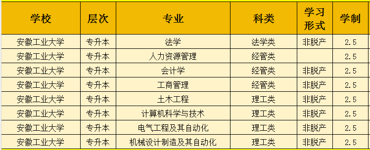 安徽工业大学继续教育学院2026年函授专升本拟开设以下专业(具体以省教育招生发布为准)。